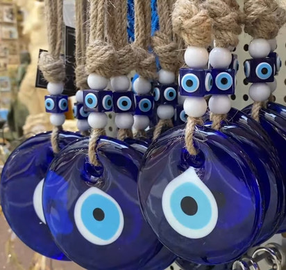 קוריוז קטן, לאן שלא תפנו תוכלו למצוא עשרות עיינים נגד עין הרע, אם זה עיניים מזכוכית, אם בתכשיטים או מדפסות על בדים. גם חמסות יש כאן בשפע